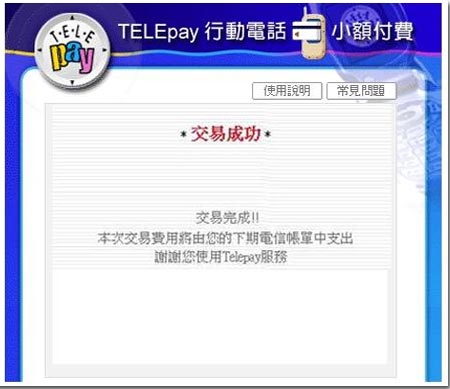 交易成功,開始使用服務!