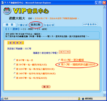 當您完成使用 7 C幣補進麻將排名廳後,您即可至遊戲中繼續打牌囉!