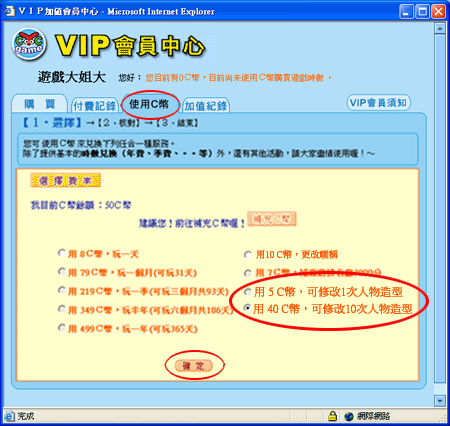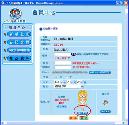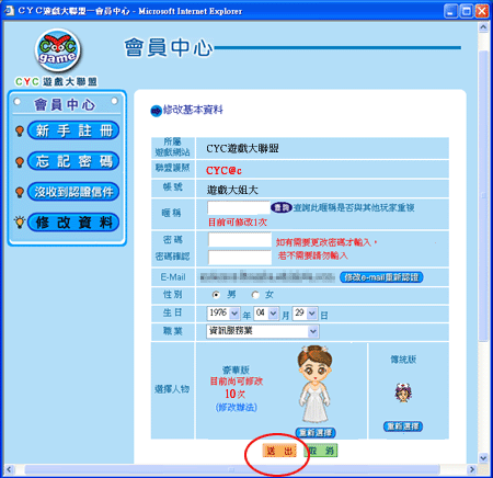 當您選擇的新人物造型確定後,請勿必記得按下「送出」哦。