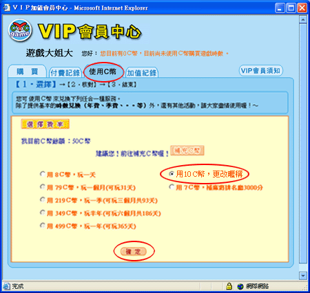 當擁有足夠C幣後,請至