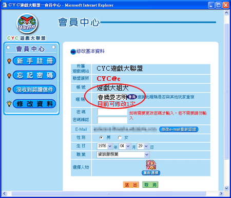 中修改您喜歡的暱稱囉∼