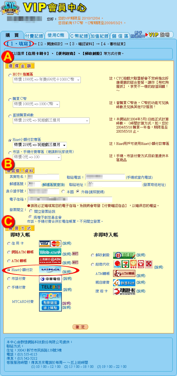 購買方式:系統會自動為您選擇「Hinet小額付費」方式。 |