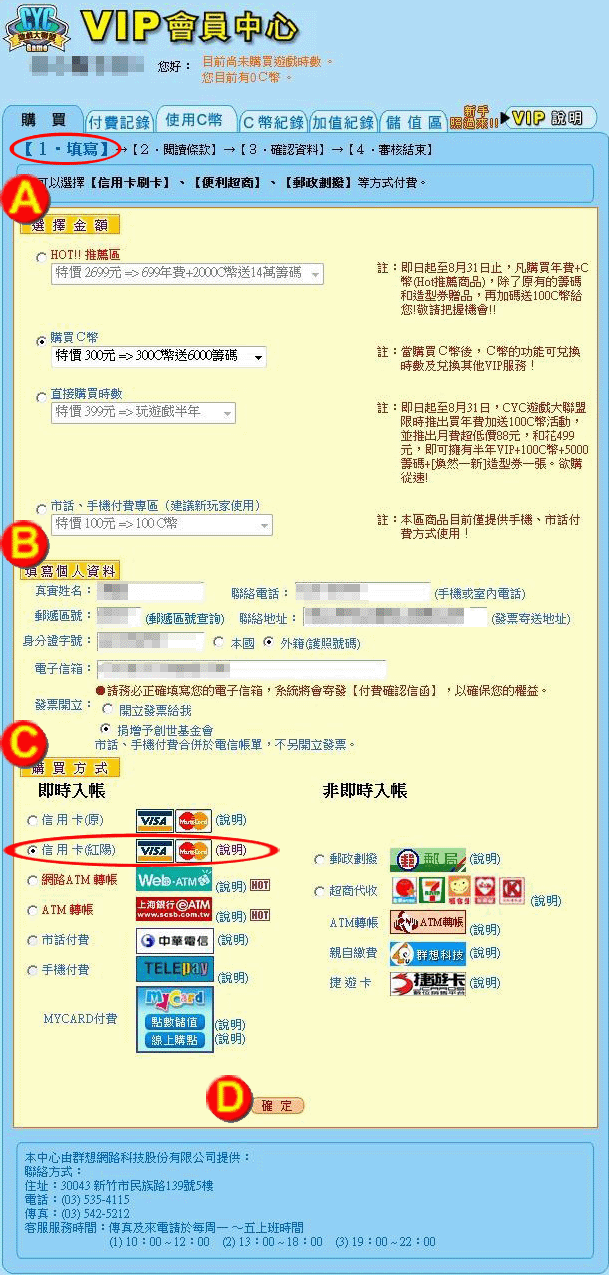 填寫個人資料:請務必填入您詳細資料以便購買程序正確。 |