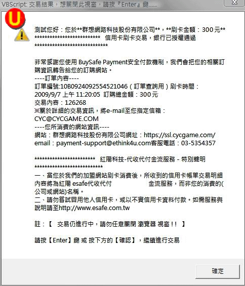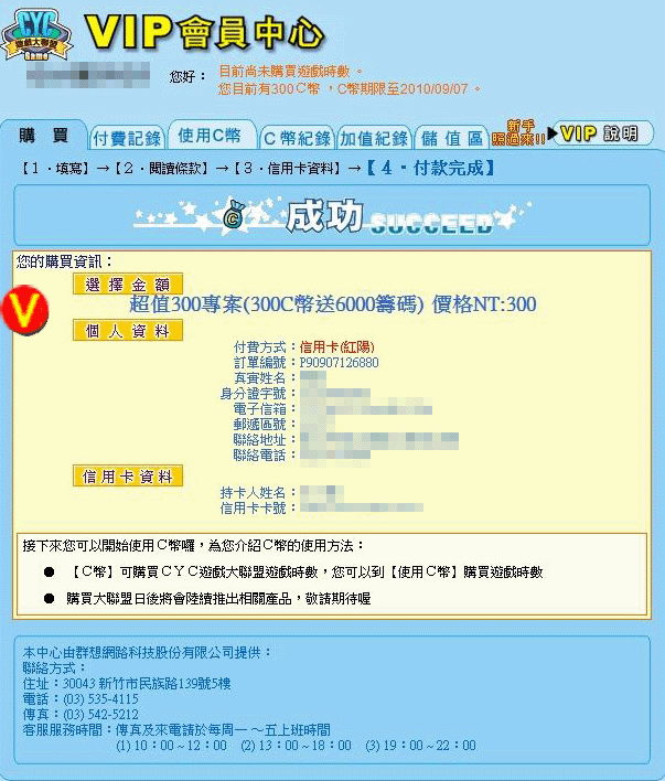 此頁面將通知您的信用卡購買流程是否成功!若對付費有任何疑問,請來信至客服中心洽詢! |