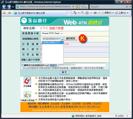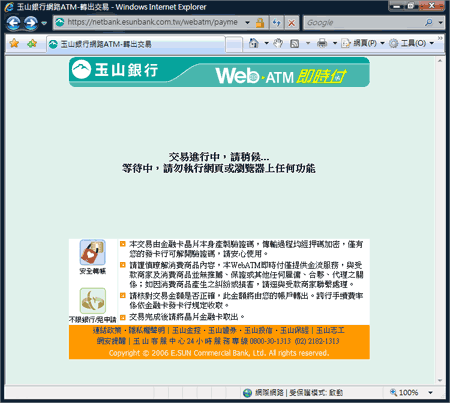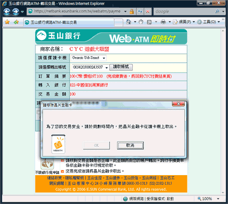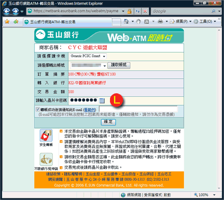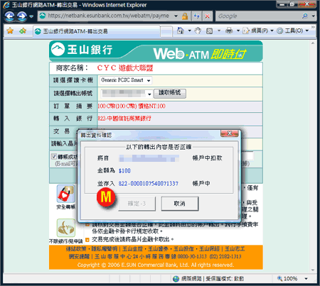 「確定」,開始進行玉山網路ATM轉帳。 |