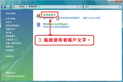 步驟三、點選使用者帳戶文字。
